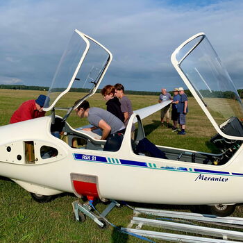 Nach der ersten Nacht im Ferienquartier wurden dann am Samstagmorgen die Flugzeuge aufgerüstet und an den Start geschoben. Denn es ist gute Thermik vorhergesagt und schließlich stecken wir durch das bisherige Wetter und personelle Ausfälle über das Jahr hinweg voll im Abstiegskampf der diesjährigen Bundesligasaison. Also ging es hochmotiviert in die Luft. Den ersten Däpfer gab es aber nach kurzer Zeit als Dominik mit der LS7 in Hoyerswerda auf dem Flugplatz Nardt landen musste. Nachdem Hacki zum Rückschlepp vorbeikam ging es wieder in die Luft und in einem Jojo über dem Truppenübungsplatz Oberlausitz, welcher am Wochenende nicht benutzt wurde und somit frei nutzbarer Luftraum war, auf Punktejagd. Daneben war noch Bernhard und Otto im Arcus unterwegs und auch Carsten steuerte einen kleinen Flug zum Tagesergebnis bei. Dieses fiel mit dem vorläufigen 23. Platz aber alles andere als erfreulich aus, was auch dadurch beding war, dass Ludwigs flug aufgrund von technischen Problemen nicht ausgelesen werden konnte.