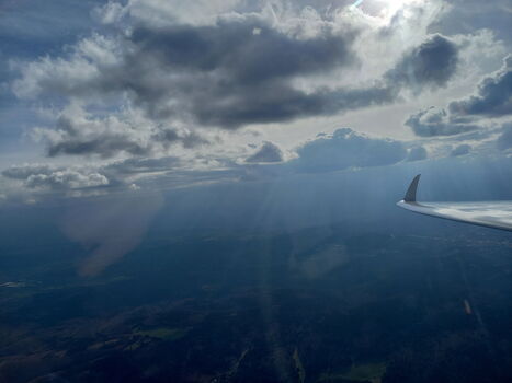 Petra und Bernhard waren im Arcus auf einer Linie von der Fränkischen Schweiz bis in den Thüringer Wald unterwegs und konnten hier über 262 km eine Geschwindigkeit von 104 km/h zurücklegen. Auf einer ähnlichen Linie war auch Gerd-Peter mit seiner LS8neo unterwegs und legte 228 km mit einer Speed von 91 km/h zurück. Den dritten Flug steuerte Dominik auf der LS7neo des Vereins bei. Der Flug führte zuerst in Richtung Haßfurt. Nachdem eine vorzeitige Landung am dortigen Flugplatz noch verhindert werden konnte, ging es anschließend in den Thüringer Wald. Dabei wurde noch eine Geschwindigkeit von 71 km/h über 179 km erzielt.