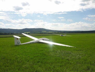 Begonnen hat unsere Flugwoche gleich einmal mit ein paar Außenlandungen. Am Samstag konnten Rudi und Patric ihre Flüge nicht in Lichtenfels beenden. Während Rudi es noch auf den Flugplatz in Ebern geschafft hat musste sich Patric eine Wiese nahe Mainleus suchen. Hier war er jedoch nicht alleine. Bereits vor ihm musste dort ein Segelflieger aus Ellwangen landen.