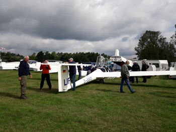 Nachdem unsere Anreise gestern sehr verregnet war, begrüßte uns das Klixer zwar trocken, aber mit schlechten Streckenflugbedingungen. Daher nutzten wir den heutigen Tag, um die Schulflugzeuge (ASK21 & Ka8) aufzurüsten und einige Übungs- und Einweisungsstarts an der Winde zu absolvieren.