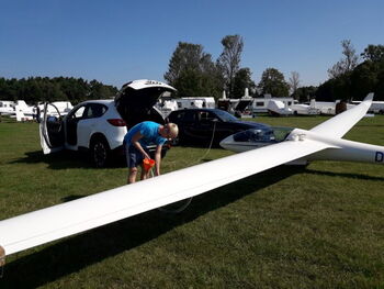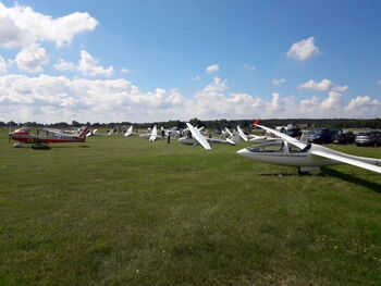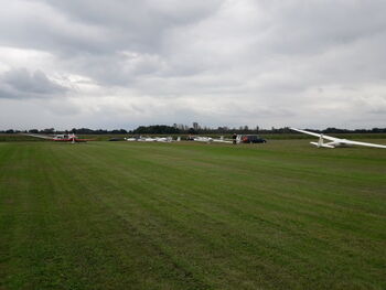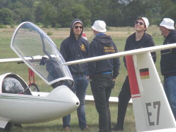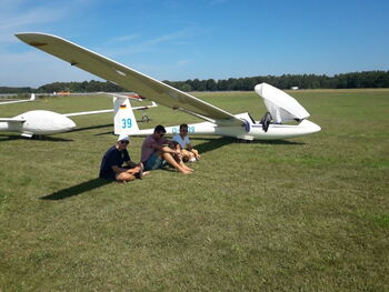 Der Tag begann mit sehr guten Aussichten und einer potentiellen Flugdistanz von 500km im Briefing. Daher rüsteten wir alle Flugzeuge auf und tankten Wasser um schnelle Geschwindigkeiten für die Bundesliga erfliegen zu können. Leider war das Wetter jedoch sehr viel schlechter als vorhergesagt sodass wir sehr lange auf den Start warten mussten. Während unsere Flugschüler ein paar kurze Platzrunden drehten, wartete der Rest der Flotte auf besseres Wetter. Gegen 15 Uhr starteten dann auch unsere Liga-Piloten. Philipp und Gerd Peter kamen aber nicht weiter als 15 Kilometer vom Platz weg, die restlichen Piloten mussten sofort wieder landen.