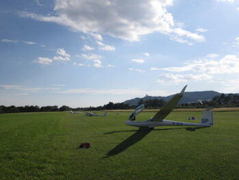 Warm und trocken begann der Tag. Bereits beim Frühstück hatten wir über zwanzig Grad und keine Wolke am Himmel. Dies änderte sich auch den ganzen Tag über nicht. Lediglich ein paar Cirren zogen über dem Flugplatz auf und machten es uns somit schwer zu den guten Verhältnissen mit Cumulusthermik im Riesengebirge und hinter der polnischen Grenze zu gelangen.