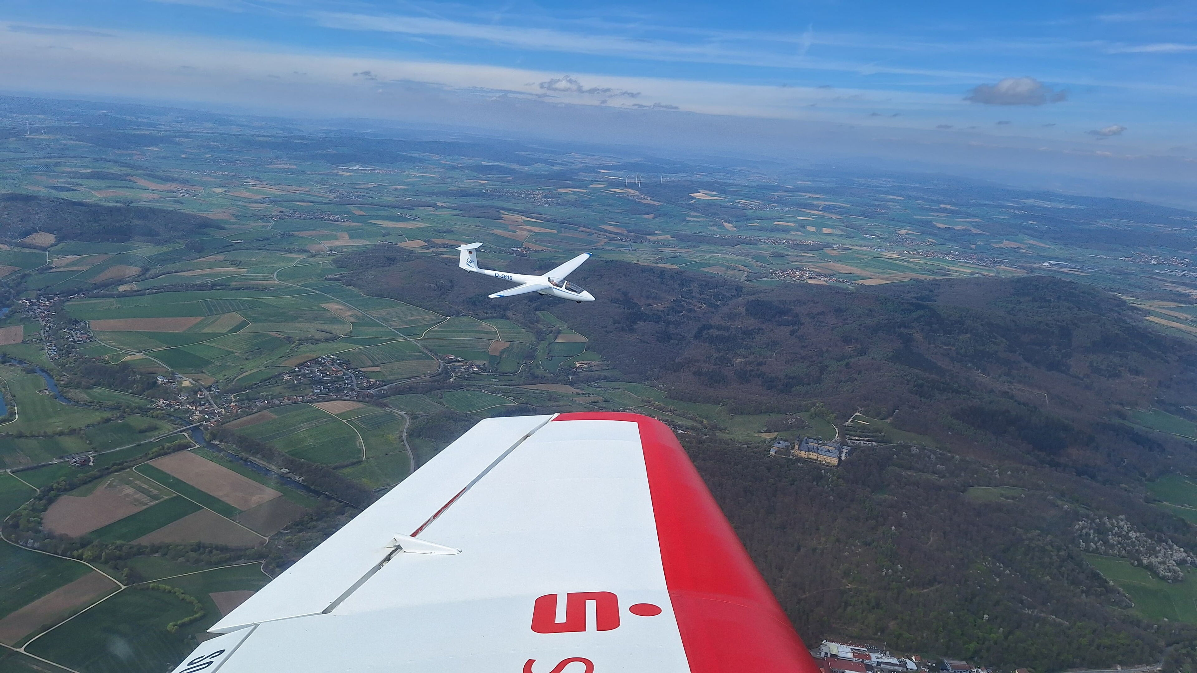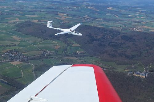 Am Dienstag vor Ostern war es dann endlich soweit und wir machten uns mit unserer DR400 auf den Weg nach Bamberg, wo Reinhold schon am Flugplatz mit unserer ASK21 auf uns wartete. Nachdem wir das Flugzeug aufgerüstet haben, ging es auch schon los und die D-5810 ging zu ihrem Abnahmeflug in die Luft. Dieser ging problemlos über die Bühne und wir konnten anschließend unsere ASK21 im F-Schlepp zurück nach Lichtenfels überführen. Wir freuen uns nun auf eine schöne Flugsaison mit vielen interessanten Erlebnissen in unserem "neuen" Doppelsitzer.