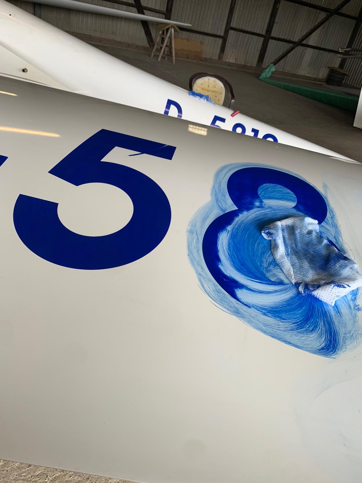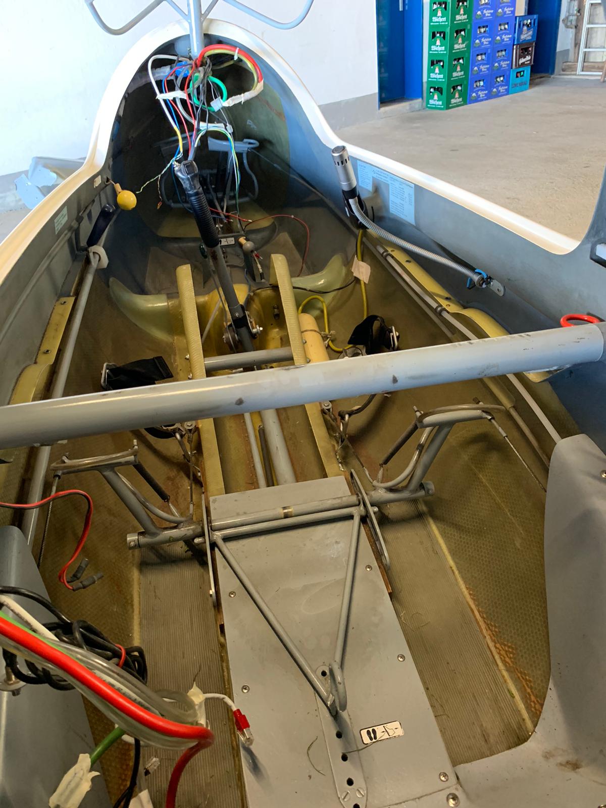 Nachdem der alte Lack ab war, konnten sich die Profis der Firma dann im neuen Jahr ans Werk machen und die ASK21 auf Herz und Nieren inspizieren. Hierbei wurden sämtliche Lager, Seile, Gestänge, usw. geprüft und wo nötig ersetzt. Zudem erhielt das Flugzeug seine neue Lackierung. Nachdem dies geschehen war, konnte der Flieger mit seinem neuen Design foliert werden. Doch nicht nur äußerlich ist unsere ASK21 erneuert worden. Auch im Cockpit wurde das Flugzeug komplett überarbeitet und erhielt neben einer neuen Innenraumlackierung auch neue Instrumentenbretter sowie neue Sitzkissen und Gurte. Hierfür ein großer Dank an Hacki, Anna und Carsten, die sich um das Außen- bzw. Innendesign gekümmert haben und unzählige Stunden an Arbeit hier investiert haben.